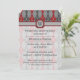 Die Raute geht 8-Bit mit diesem klassisch hellroten, pewter grauen und mittelgrauen Farbschema, mit einer leicht silbernen Kontrastnähte, die an die strahlenden Mitglieder eines Lagerfeuers erinnert. Ein graues Band mit Zieh und rotem Rand und passendem Kästchen enthält ein Monogramm-Set über einem leichteren Bereich auf dem unteren Kartenbereich, wo Sie Beispieltexte finden, die Sie anpassen können, um eine personalisierte Einladung für Ihre Veranstaltung zu erstellen.