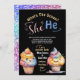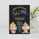 Die Niedliche, moderne und trendige Party Einladung des Eis Cream Gender Reveal zeigt eine Party Einladung-Karte mit einer Aquarellillustrierung von Eis in Waffeltönen in Rosa und Blau mit goldfarbenem Eiscreme. Im Text steht: "Was ist der Koffer? Junge oder Mädchen?" Ideal für ein Gender-Enthüllungs-Party im Sommer.