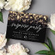 Unsere festliche Überraschung-Party Einladung in schicken Schwarz, Gold und Weiß weist einen reichen schwarzen Hintergrund mit Streichern von glänzenden goldfarbenen Bokkeh-Lichtern über die Oberseite auf, und "Überraschung Party" in chic Kalligraphie Schrift Typografie. Persönlich gestalten Sie Ihre Überraschungsfeierlichkeiten in Weiß. Sie können für jede Gelegenheit, wie Geburtstagsfeiern oder Jubiläumsfeiern, genutzt werden.