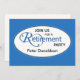 Eine elegante Einladung zu einem Party kann an Freunde und Familie geschickt werden, wenn jemand in Rente geht. Königlich blaue Hintergrundbilder aus dem ovalen Nachrichtenbereich mit Skriptdetails.