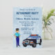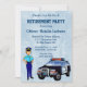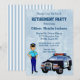 Einladung zur Pensionierung einer pensionierten Polizistin. Design hat einen Polizeiwagen und einen Polizeibeamten mit den Worten, Sie sind zu einem Party in der Rente eingeladen. Einfach mit Ihren Party-Details anpassen.