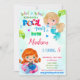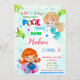 Schwimmbad Party Geburtstagseinladung Girl Meerjungfrau Geburtstags-Einladung Pool Party einladen Pool Einladung. Kommen Sie mit dieser niedlichen Einladung zum Geburtstag eines Mädchens Wasserspass mit zwei niedlichen Meerjungfrauen. Editieren Sie diese einfach zu bedienende Vorlage einfach im Menü Personalisieren, um sie ganz besonders zu machen.