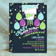 Wenn Sie dieses lustige und kreative Party haben, brauchen Sie eine lustige und kreative Einladung! Dieses Design bietet einen Kuchen auf den Kopf mit Kerzen. Es gibt Ballons, die auch verkehrt herum mit den Worten "Crazy verkehrt herum verkehrt herum verkehrt Party"! Die Farbtöne sind blau, grün und lila und gut für jedes Geschlecht.