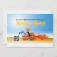 Bleiben Sie auf und brennen Sie sich um! Ein brennendes Motorrad mit flammendem Hinwinken, ein wunderschönes blondes Fahren mit der Party Einladung! Sehen Sie sich die ganze Kartenreihe für Altersgruppen und Beziehungen in meinem Geschäft an. Alle Kunstwerke, Copyright Norma Cornes