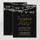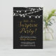 Feiern Sie einen besonderen Tag mit dieser überraschenden goldenen Party Einladung! Dieses Design zeichnet sich durch eine stilvolle Skripttypografie mit einer goldenen Textur und einer hellen Zeichenkette auf einem schwarzen Hintergrund aus. Sie können die Hintergrundfarbe anpassen.