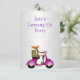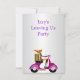 Einladung Geburtstag Silber Weiß mit Mädchen auf Motorrad und Gepäck. Für jedes Ereignis oder Geburtstag individuell anpassen.