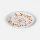 Dieses wunderschöne Party aus Erntedank der Herbstfamilie besticht durch einen hübschen Kranz aus braunen, orangefarbenen und roten Blätter rund um Ihren personalisierten Text. Passen Sie diese passenden Teller für die gesamte Gruppe mit Ihrem Nachnamen und Jahr in schönen Herbstfarben an.