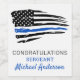 Herzlichen Glückwunsch! Fügen Sie Ihre Werbeaktion, Ruhestand oder Graduiertenparty mit dieser dünnen blauen Linie die letzte Touch hinzu, die Weinetiketten und Party-Vorräte beglückwünscht. USA amerikanische Flagge Design in Polizei Flag Farben, modernes Design. Diese Glückwünsche Polizeibeamten Einziehung von Pensionierung wird ein Favorit sein. Personalisieren Sie mit Offizieren Rang und Namen. Diese Polizeiservietten sind auch perfekt für die Polizeiakademikerparty. Sehen Sie sich unsere Thin Blue Line Kollektion an, um Einladungen der Polizei, Polizeigeschenke, Gastgeschenke und Vorräte zu finden. COPYRIGHT © 2020 Judy Burrows, Black Dog Art - Alle Rechte vorbehalten. Gütesiegel der blauen Linie Party für die polizeiliche Alterssicherung Weinetikett