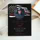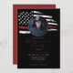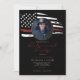Diese Party Einladung für den Ruhestand verfügt über eine bedrängte Aquarellfarbe, eine dünne rote Linie und eine fett schwarze Hintergrundfarbe. Diese Einladung kann genutzt werden, um Feuerwehrleute oder andere Berufe zu feiern, da die Farben 100% editierbar sind. Fügen Sie der Vorderseite ein Foto für eine persönliche Touch hinzu.