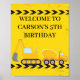Cooler Sonderbagger und Müllwagen Geburtstagsgestelle für ein Kind, das gelbe Baufahrzeuge in schwarz und gelb Liebe. Die Party-Dekoration für einen kleinen Jungen, der Autos und LKW Lieben. Passen Sie den Namen Ihres Kindes unter dem schwarz-gelben Warnstreifen-Band mit einem personalisierten Geburtstagsschild mit Namen und Alter an.