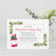 Die Einladung zur Weinbörse Holiday Wine verfügt über einen weißen Hintergrund mit Aquarellnadeln in den Ecken.