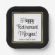 Fügen Sie eine elegante Touch zu den Dekorationen des Party in den Ruhestand mit Tellern in Schwarz, Weiß und Gold. Alle Formulierungen sind einfach zu personalisieren. Das Design verfügt über eine Folie mit Imitaten, eine moderne Schrift-Kalligraphie-Nachricht und eine stilvolle Vintage Typografie-Jahre Service mit dem Namen von Unternehmen oder Unternehmen. Es kann für jeden Anlass angepasst werden, oder um ein beliebtes Angebot oder lustiges Sprichwort einzubinden. Bitte beachten Sie, dass Gold farblich gedruckt ist, nicht metallische Folie. Das minimale klassische Design hat ein berufliches Aussehen, das für ihn oder für sie geeignet ist, einen pensionierten Mitarbeiter, Mitarbeiter, Freund oder Familienmitglied. Herzlichen Glückwunsch und Happy Retirement!