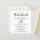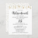 Haushaltsfreundliche, elegante Party Einladungen mit moderner Kalligraphie-Schrift Typografie und Goldkonfetti und Rationalisten, personalisiert mit den Jahren des Dienstes des Rentners. Gedruckt auf 4,5 x 5,6 Zoll leichtem Papier anstelle von Kardware, ideal für handverleitende und konservative Budgets. HILFE: Für Hilfe bei der Modifizierung oder Personalisierung des Designs, bei Farbänderungen, bei der Übertragung des Designs auf ein anderes Produkt oder wenn Sie die Dinge koordinieren möchten, wenden Sie sich bitte an den Designer, BEVOR er Bestellung über die Registerkarte Zazzle Chat MESSAGE unten oder per E-Mail an makeitaboutyoustore@gmail.com.