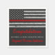 Herzlichen Glückwunsch! USA Fahne Design in Firefighter Flag Farben, Vintag bedrücktes Design auf schwarzem Leder. Diese glückliche Ruhestandssammlung für Feuerwehrleute wird ein Favorit sein. Personalisieren mit Fireman Namen, und Glückwünsche können in glückliche Pension geändert werden. Ideal für Feuerwehrmann-Party oder Feuerakademie-Abschlussfeier. Sehen Sie sich unsere dünne rote Line-Kollektion an, um Einladungen für Feuerwehrleute, Feuerwehrgeschenke, Gastgeschenke und Vorräte zu finden. COPYRIGHT © 2020 Judy Burrows, Black Dog Art - Alle Rechte vorbehalten. Party für Feuerwehrleute Ruhestand Napkins, dünne rote Linie