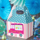 Eiscreme Truck Gastgeschenk Box mit aquamarinem blauem Polka Punkt oben und rosa Streifen unten. Diese Gunst-Box ist so süß und großartig für so viele verschiedene Anlässe zu benutzen. Sie können den Text leicht bearbeiten, um den Anzug Ihrer Veranstaltung zu erhalten.