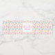 Party-Wasser-Flaschen-Etiketten mit einem köstlichen und whimsical-Muster. Herz, Liebe Briefe, Muffins, Tulpen und Kirschen bringen Freude und Glück in dieses niedliche kleine Muster. Hübsche Pastellfarben. Ein weißes Quadrat mit einem goldenen Imitat-Folienabrand, der oben mit dem Text im Inneren platziert ist.
