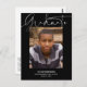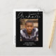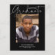 Diese minimalistische Abschluss Postkarte zeichnet sich durch ein einfaches Design mit informellem Skript aus. Auf der Vorderseite ist "Graduate" in lässiger Kalligrafie über die Oberseite geschrieben, mit einem großen Foto darunter. Fügen Sie unten den Namen, die Schule und das Jahr des Abschlusses hinzu. Die Typografie ist weiß vor einem farbigen schwarzen Hintergrund. Auf der Rückseite der Abiturpostkarte können Sie eine Nachricht an Empfänger und/oder Graduiertengruppe Informationen hinzufügen.