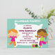 Diese Party Einladung ist mit zwei Mädchen mit Schlafanzügen, einem großen weißen Kissen und anpassbarem Text ausgestattet.