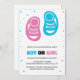 Es erwarten spannende Neuigkeiten! Unsere Party Einladung "Jungen oder Mädchen - Twins Gender Reveal" Set die Bühne für den großen Enthüllungsmoment. Feiern Sie die Freude der Zwillinge mit diesem bezaubernden Design mit rosa und blauen Punkten, das die Vorfreude auf "sie oder er?" und "Junge oder Mädchen?" einfängt. Freuen Sie sich auf das Party Ihres Zwillingsgeschlechts. Bestellen Sie jetzt und lass den Countdown beginnen! Verpassen Sie nicht - machen Sie Ihr Party mit unserer Einladung zur Genderoffenbarung von Twins unvergesslich!