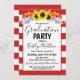 Eine niedliche Abschlussfeier mit Sonnenblumen und roten Streifen.