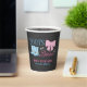 Niedliche Stiefel oder Bögen Geschlecht zeigen Papiertassen auf, die für Ihr Party personalisiert werden. Ein landesweites Thema zeigt ein mädchenhaftes rosa Bogen und blaue Cowboystiefel auf einem Kalkboard-Hintergrund.