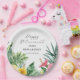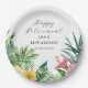 Diese modernen tropischen Aquarellfarben-Blume mit grünen Ruhestand Party Papier Teller können mit Ihren Informationen in eleganter Typografie personalisiert werden. Entwickelt von Thisisnotme©