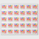 A Roll of White, Wrapping Paper,29" x6 Feet, =Optional, Drawing/Design of the Word = Party, in the color Red and White, with some Colorful Balloons, Confetti, and Gift Packages, = (Drawing/Design by P. J.M.)