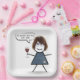 Hängt ein Mädchen, das ein Denim-Kleid mit Haaren, Brillen trägt und ein Glas Rotwein zum Party hält. Textziffer in der Sprechblase können bearbeitet werden.