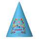 Feiern Sie stilvoll mit diesem lustigen blauen Papier Party Hut! Mit fröhlichen Kindern, Ballons, Party-Hüten und Konfetti geschmückt, bringt es jedem Geburtstag eine besondere Freude. Personalisieren Sie sich mit dem Kindernamen für eine besondere Touch, perfekt für Party-Fotos, Tischdekoration, und schaffen Sie Spaß zum Geburtstag Erinnerungen!