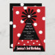 Ein niedlicher und wunderlicher mutiger schwarzer Partyhut und roten und weißen Polkapunkte ist eine Spaßgeburtstags-Party Einladung während jedes möglichen Alters!