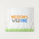 Hintergrund des verblassten Waldes Wild ein Waldland 1. Geburtstag Party. In Blau, Orange, Braun. Teil unserer Wild One Birthday Collection.