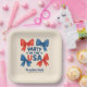 Dieses Design präsentiert das Party "Party in den USA" vom 4. Juli mit roten und blauen Bögen auf pastellblau und pastellrosa Hintergrund. Dieses Produkt kann leicht personalisiert werden. Wenn Sie Hilfe bei der Anpassung des Produkts benötigen oder passende Produkte benötigen, kontaktieren Sie mich bitte über Zazzle.