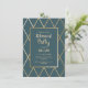 Diese elegante und trendige Pensionierung Party Einladung kann für Ihren besondere Anlass individuell gestaltet werden. Es verfügt über einen (simulierten) Rahmen mit Goldfolie und passenden geometrischen Hintergrundlinien. Die Worte "Pensionierung Party" sind in einem stilvollen Schriftart. Die Hintergrundfarbe ist aquamarin, kann aber in eine beliebige Farbe geändert werden. Der Text kann nach Ihren Wünschen geändert werden. Eine einfache und elegante Art und Weise, Gäste zu Ihrem speziellen Event einzuladen.