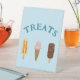 6 x 8 Tischschild für Ihre Speise- und Getränkestation. Ein hellblauer Hintergrund mit Eiscreme.