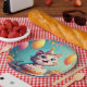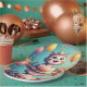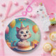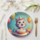 Ein niedliches Kätzchen in einem Party, das eine Geburtstagsfeier feiert, umgeben von Ballons, Geschenken und festlichen Dekorationen. Die Szene ist bunt, lebendig und voller Freude und Feiern.
