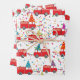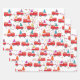 Eine niedliche Abbildung eines roten Feuerwehrwagenmusters mit Party-Hüten, blühenden Party-Hörnern und Konfetti-Regen. Der bezaubernde rote Motor eilte raus, um ein Feuer zu löschen. Ideal für eine Geburtstagsfeier oder eine andere Veranstaltung. Ideale Geburtstagsgestaltung oder Geburtstagsgeschenk für LKW-Notruffans.