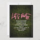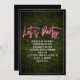 Rosa Neon inspirierte "Let's Party" Skript über den Hintergrund von Boxwood-Grün mit benutzerdefiniertem Weißtext.
