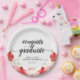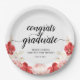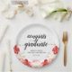 Graduation Party Klasse der 2021 Party Papier-Teller mit einem üppig roten Blumenrand und trendige Skripttyp-Glückwunsch grad! Rot und schwarz fett.