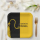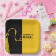 Creative Graduation Party Glückwunschs Design mit einem klassischen schwarz-goldenen Graduierdeckel auf gelbem Hintergrund. Bearbeiten Sie den Text, um den Namen des Senior Class Grades hinzuzufügen.