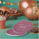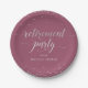 Diese eleganten und festlichen Ruhestandspapier-Teller verfügen über silberne (simulierte Folie) Konfetti mit passenden Buchstaben, die "Party für das Ruhestand" in einem wunderschönen Skript-Schriftart sagen. Die Hintergrundfarbe ist ein Farbton von Rosa / Rose, kann aber in jede beliebige Farbe geändert werden.