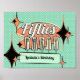 50er Jahre Party Poster zeigt eine moderne Schrift im Schilderstil des "50er Party''. Dieses Design umfasst Elemente aus Pfefferminzgrün, Orange, Schwarz und Weiß, Polka-Dot-Hintergrund, Retroformen, Sternen und Designs, die in den 50er Jahren inspiriert wurden. Enthält eine Vorlage zur persönlichen Anpassung.