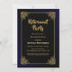 Eine schwarze und goldene Party Einladung für den Ruhestand.