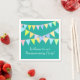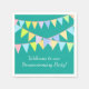 Individuelle Party-Servietten für neue Zuhause. Fröhliches Design mit farbenfrohen Hängebahnen auf einer Saite. Ideal für bewegende Feiern mit Freunden und Familie. Fügen Sie Ihren eigenen personalisierten Text, um Ihre neue Adresse zu feiern. Ideal für Cocktails, GRILLEN oder Abendessen.