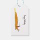 Ein Geschenk-Tag mit einer Illustration einer Schlampe, die zu einem Party darauf geht.