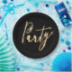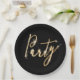 Party-Sparklertext auf schwarzer Papierplatte Pappteller