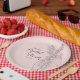 Party Teller für ein Brautparty in einem sanften, eleganten Stil mit einer bezaubernden grafischen Abbildung der Lilie des Tales.
