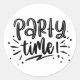 Party Time! Fun Black & White Hand-Lettered Script Runder Aufkleber
