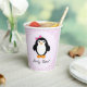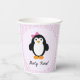Party Time! Niedlicher Cartoon Pinguin mit rosa Blumenbechern.