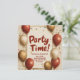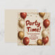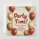 Dieses fröhliche und skurrile Bild ist eine lustige Einladung Vorlage mit den Worten "Party Zeit!" in einem kühlen, rustikalen Schriftart. Der Text wird auf einem strukturierten, weißlich angelegten Platz zentriert, der von einem spielerischen Sortiment von Rot-, Gold- und Silberballons gerahmt ist. Eine Dusche aus festlichen Konfetti ist im Hintergrund verstreut und rundet das feierliche Ambiente ab. Dieses Bild ist perfekt für alle, die ein fröhliches und lebendiges Design für einen Geburtstag, einen Urlaub oder einen besondere Anlass suchen.