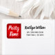 Ein roter Sonnenbrand mit 'Party Time' in Pinselschrift schmückt dieses Adressetikett.